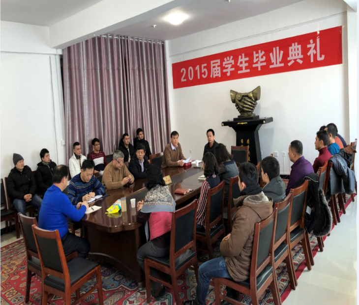 1月10日上午,新疆大学附属旅游服务技工学校在南校区行政楼三楼会议室举行2015届学生毕业典礼,全体15级毕业生共19人参加。中心副主任戴建明参加活动,培训部主任伊力·吾买尔主持。