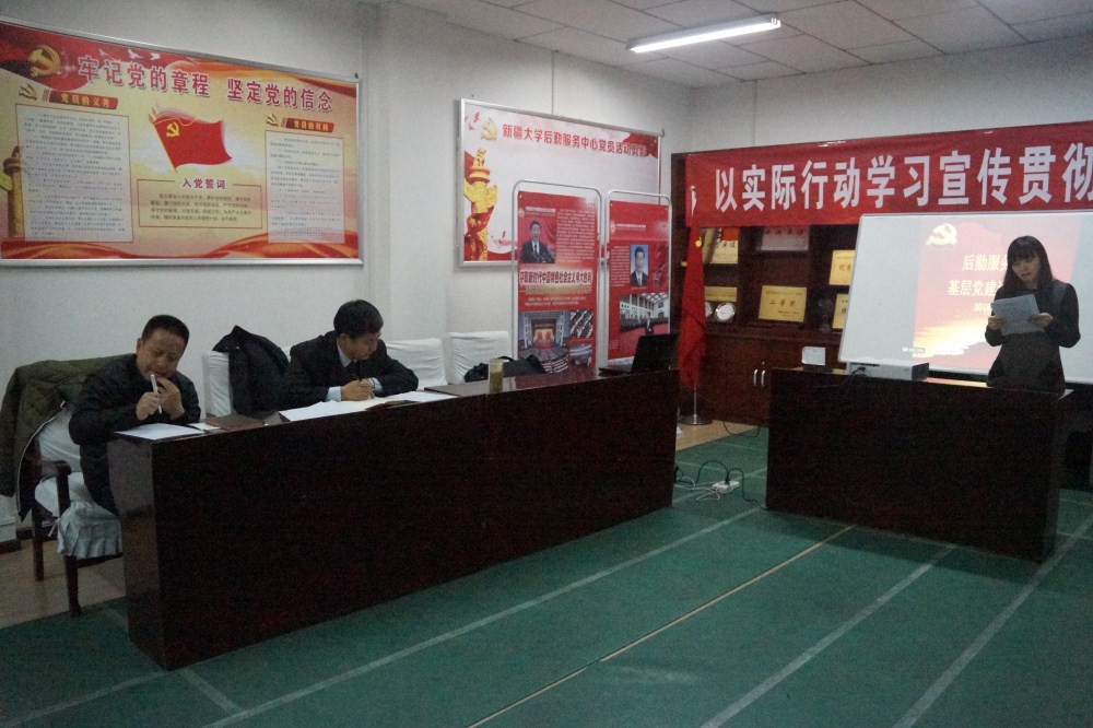 中心各党支部在2017年12月支部工作总结的基础上撰写了各支部基层党建述职报告。中心16个基层党支部,其中 3 个学生宿舍党支部进行了书面述职,13个支部依次进行了现场述职。各支部围绕落实党建工作责任,推进“两学一做”学习教育常态化、制度化,严格遵守政治纪律和政治规矩,扎实开展向“三股势力”发声亮剑同干部队伍中“两面人”作斗争专项考核工作,深入开展“作风不实”专项整治活动,发挥基层党组织战斗堡垒作用和党员先锋模范作用等开展情况和成效、存在的问题及改进措施。向参会全体党员进行了详细的汇报。参会的全体党员认真听取了各支部的述职后,进行了现场测评。党委组织员王艳提到,此次基层党建述职也是各党支部相互交流学习机会,现场测评占一定比例,中心党委将结合日常上报材料情况和平时督促检查落实情况及领导点评等形成综合评价。