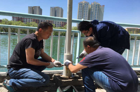 近期天气转暖,校园内师生的户外活动渐渐增多,为了给师生提供良好的夜间出行、休闲、锻炼环境,我部门抽调人员于5月10日、11日两天加班加点对校园内的多处路灯、红湖上的灯杆进行了维修。