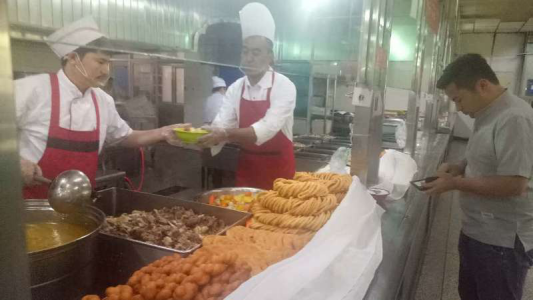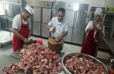 为欢庆传统节日“肉孜节”,饮食服务一部精心准备了馓子、水果、西瓜、羊肉等节日美食,并在当天特推出羊肉汤带馕一份(半价),让远离父母的学生们也能感受到节日的快乐、家的温暖。