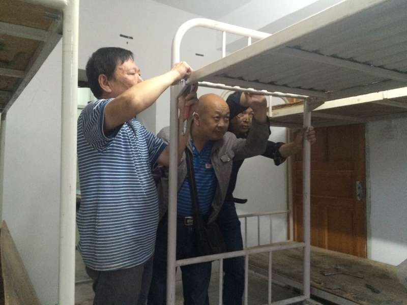 为迎接叶城第一批来校务工人员,9月10日至13日,物业一部齐上阵,对安排务工人员的住处(原保卫处)进行了彻底的清扫,安装高低床15张,整理床铺30张,之前宿舍已通电通水,相关设施、生活物品也已配备到位,为如期接待做好了充足的准备。